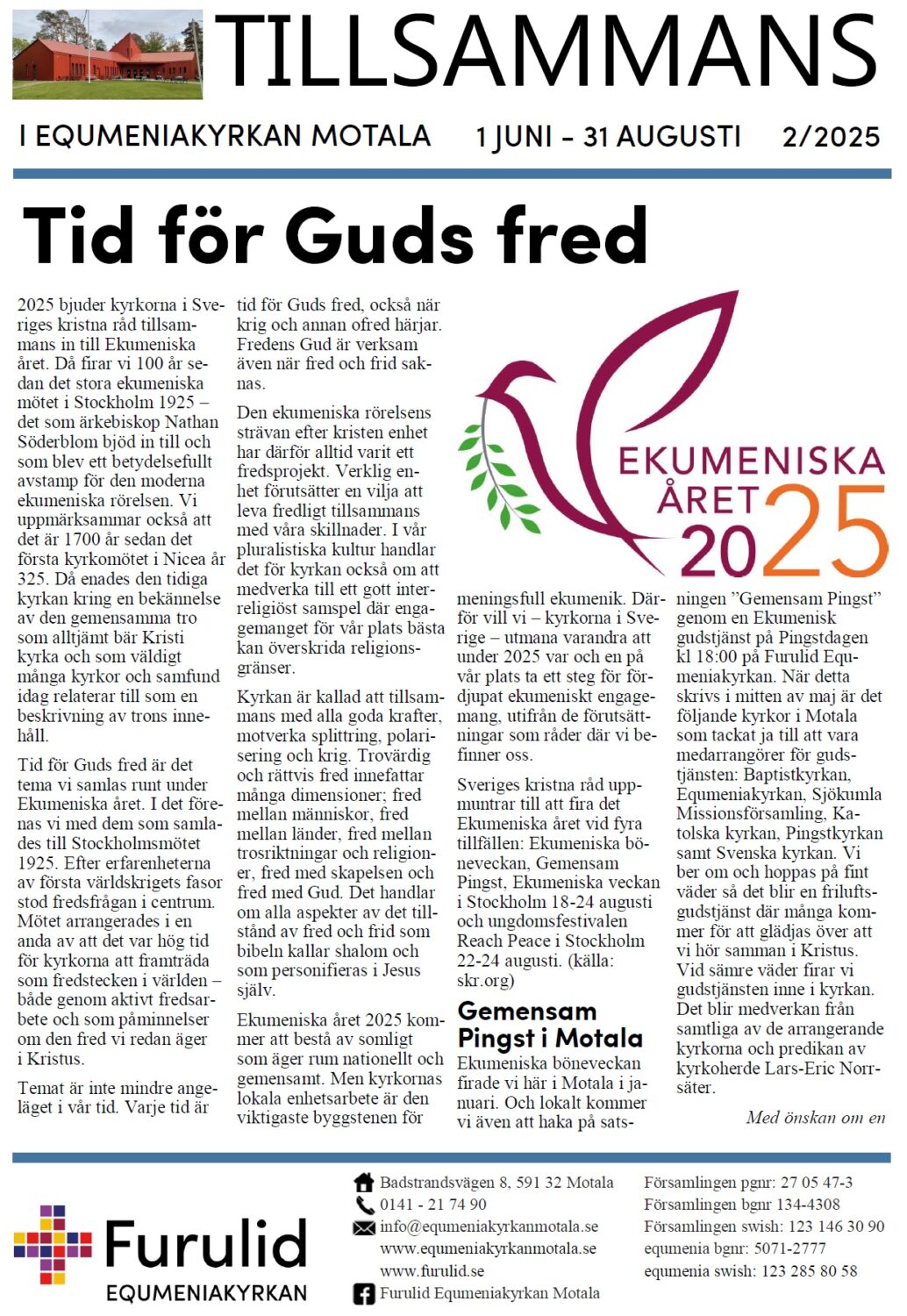 Tillsammans i Equmeniakyrkan Motala heter vår församlingstidning. En tidning som berättar vad som händer i kyrkan och församlingen.